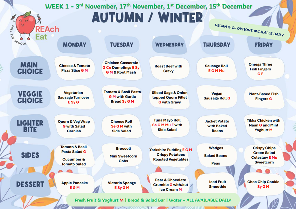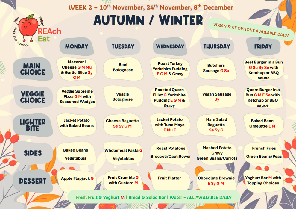 All children in Reception, Y1 and Y2 are eligible for Universal Infant Free School Meals (UIFSM) and receive a school meal free of charge daily, if ordered in morning registration.