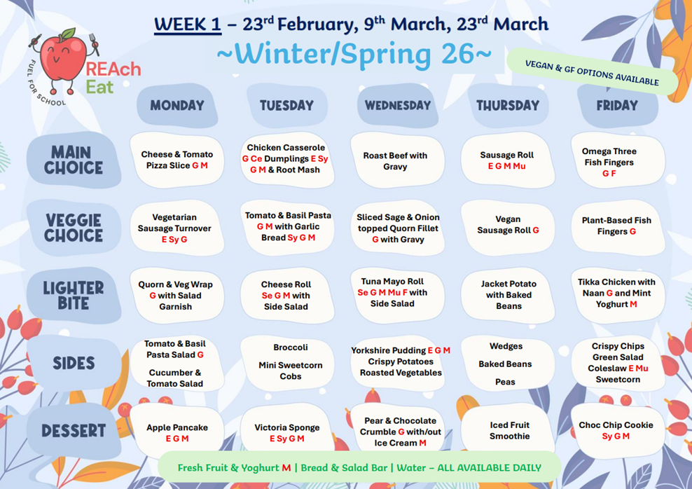 SPRING TERM 1 2026 MENUS