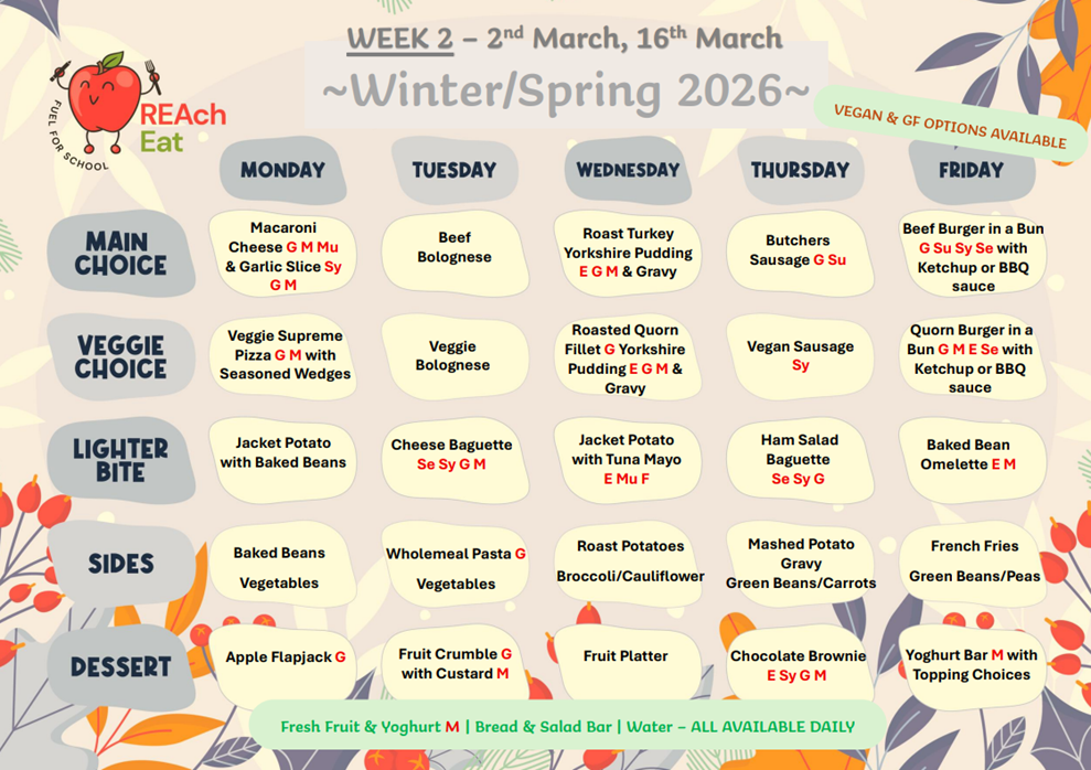 SPRING TERM 2 2026 MENUS